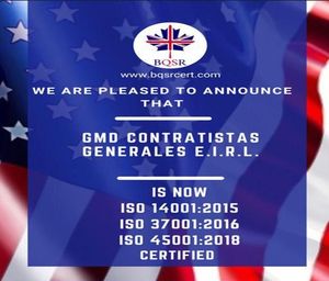 CERTIFICACIÓN ISO 9001, ISO 14001, ISO 45001, ISO 37001, proporcionando asi una alta calidad en los proyectos que realizamos, buscando satisfacer y solucionando las necesidades de nuestros clientes.